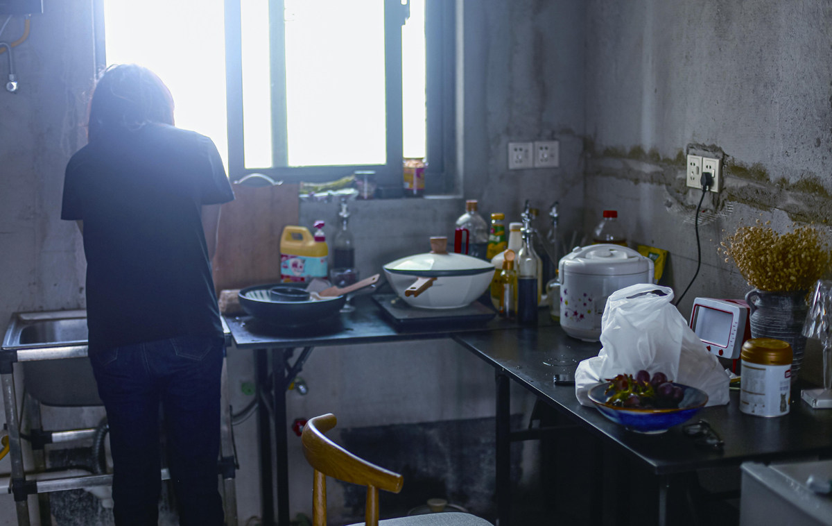 2021年7月18日,李翘在临时搭建的灶台前忙活 28万首付,120平米,每月还贷3000元,一套毛坯房,10年打工积蓄。 从2021年7月初开始,李翘“像一头牛”那样把所有空余时间都拿来手动简装修,比如拼床板、装台灯,清理阳台上的石滓。 她穿一身耐脏的黑色,戴黑框眼镜,身高1.6米左右、不到100斤,站在临时搭建的“半开放厨房”灶台前收拾水渍的时候,7月正午的阳光把瘦瘦小小的她