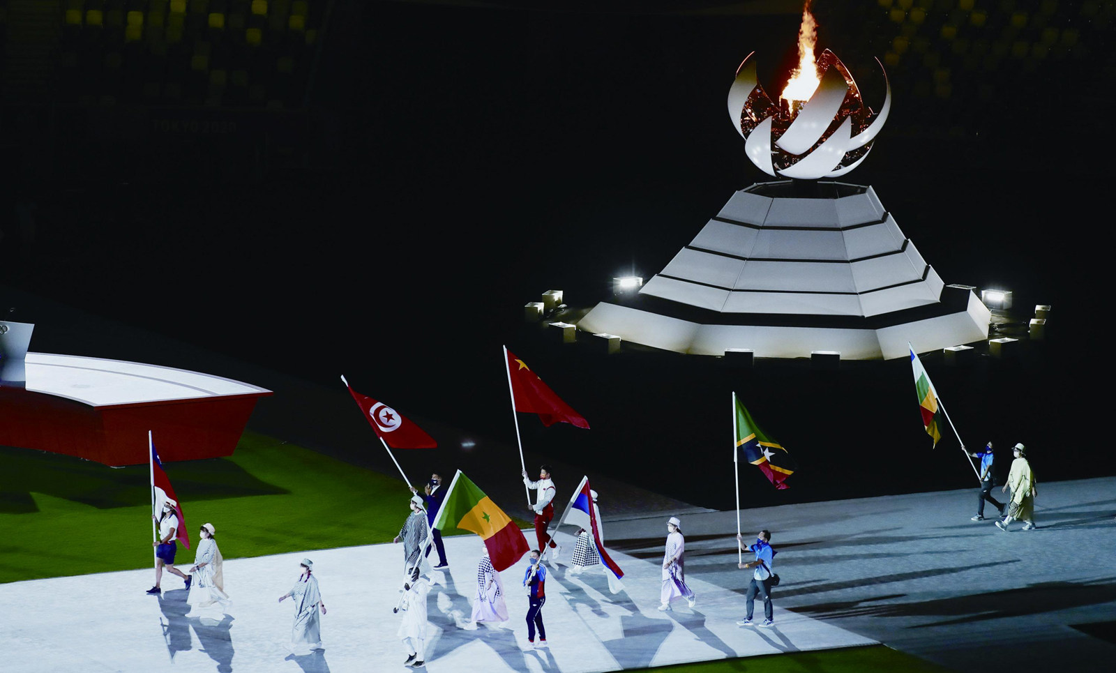 2021年8月8日,2020东京奥运会闭幕式旗手出场 9年前,英国伦敦,一个叫尤塞因·博尔特的牙买加人,将百米短跑的奥运会纪录刷新至9.63秒。现场观众欢呼雀跃,掌声雷动。 2021年,日本东京,同样是百米短跑决赛,同样是8位顶尖好手,但除了教练、媒体、志愿者以及其他田径选手的零星呐喊在空荡的场地回荡外,再无其他声音。 尽管赛事转播的另一头是亿万观众,但空旷的观众席、寂寥的加油声