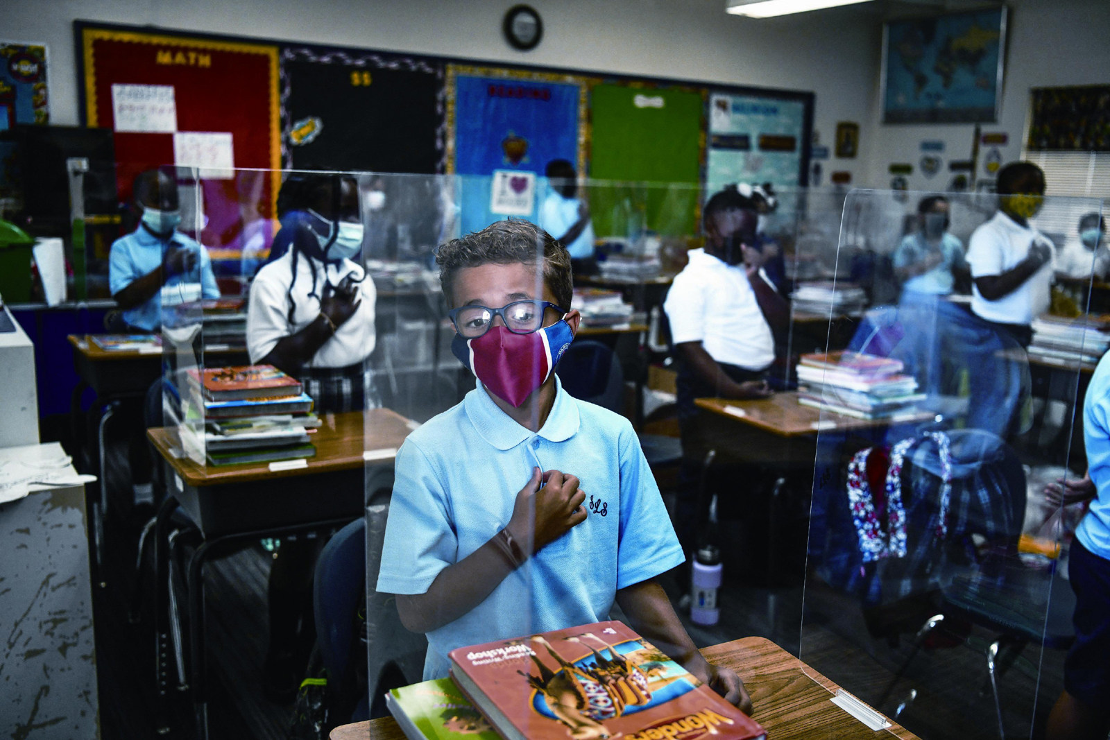 2021年8月18日,美国迈阿密,学生在暑假后戴着口罩返校 在有了疫苗保护的“后疫情时代”,病毒似乎不再是美国人最大的劲敌,反而生计上的困难,如物价飞涨、返岗迟缓、中小学开学难,成了全民“公敌”。 用芝加哥公立学校系统内的西班牙语老师塔米卡·莫拉莱斯的话说就是,你也许不会得新冠,但你一定会得疫情“后遗症”。 开学难,家长更难 卡特·克里斯蒂安往常最爱做的事,就是每天早上在街边等