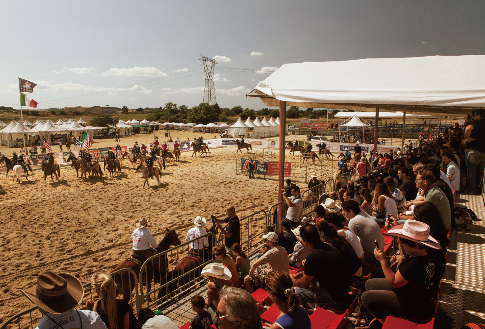 意大利安圭拉萨巴齐亚,牛仔正在进行传统的多人马术表演 皮靴、软呢帽、牛仔裤,骏马奔驰、套索飞扬,呼啸的风声里,搅进了皮鞭甩出的脆响—啪呀啪呀。 母性的青山,柔软而古老,被仁慈明朗的阳光所浸透,高大挺拔的古老柏树,就像穿着长袍的僧侣静默修行,浅玫瑰色凝灰岩遗留着中世纪小城镇的韵味。 还是那群牛仔,但这里是意大利。 说到牛仔,留给我们的是这样一些印象:过时的做派、自由叛逆之精神、被