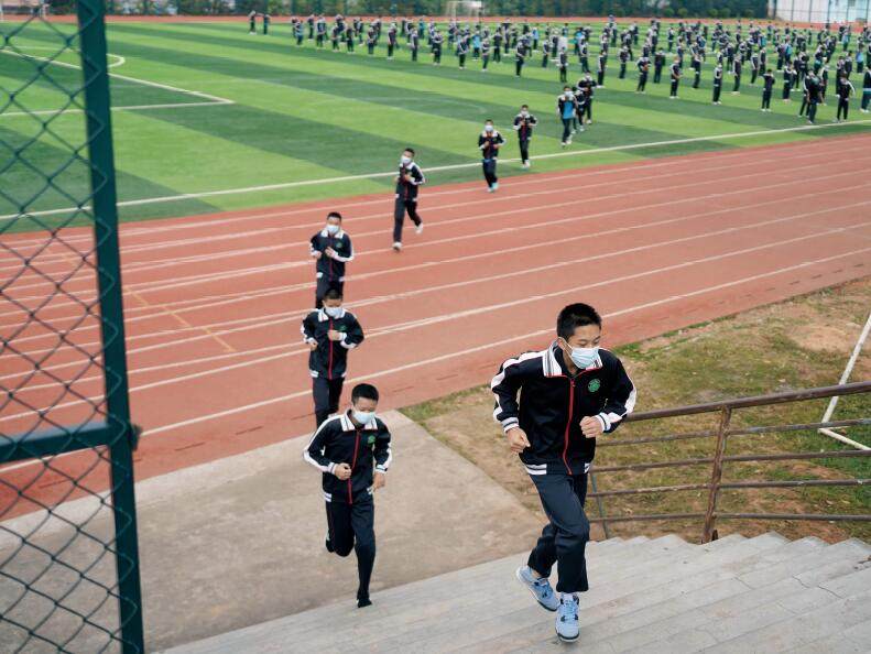 2021年12月5日,云南省陇川县民族中学学生参加完课间操后离开运动场。陇川县主城区17所学校停课后,住校学生全部留校、实行封闭管理 新冠病毒,依然是2021年的一个关键词,只不过,它变得更加难以描述。 至少在中国境内而言,对大多数人的生活来说,最坏的时刻早就过去。回头看这一年的国内疫情,只有几次小范围的“暴发”。每当它轻轻冒出了头来,各项防疫措施就齐头并进,狠狠地将火苗掐灭。