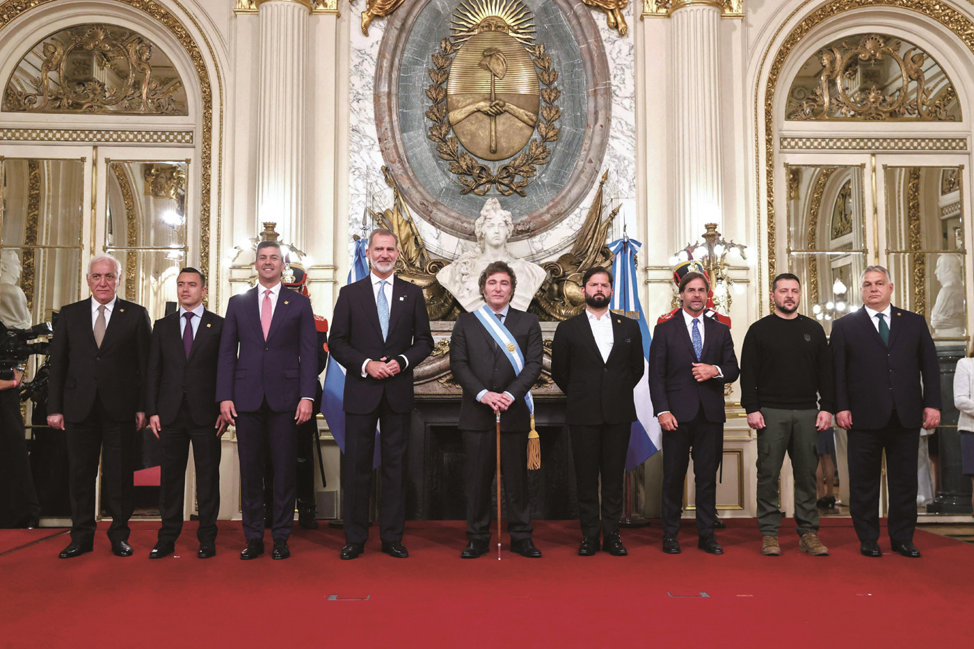 2023年12月10日,阿根廷新任总统哈维尔·米莱(中)与西班牙国王费利佩六世、智利总统博里奇、乌克兰总统泽连斯基等多国领导人合影 2023年影响拉丁美洲的三个主要因素,分别是“粉红浪潮”波及太平洋联盟、美中博弈延伸至拉美,以及四个国家的总统大选。智利第二次宪法草案公投于12月17日举行,亦值得后续观察。 “粉红浪潮”波及太平洋联盟 继“拉美失落十年”后,与拉美相关、流传较广的另