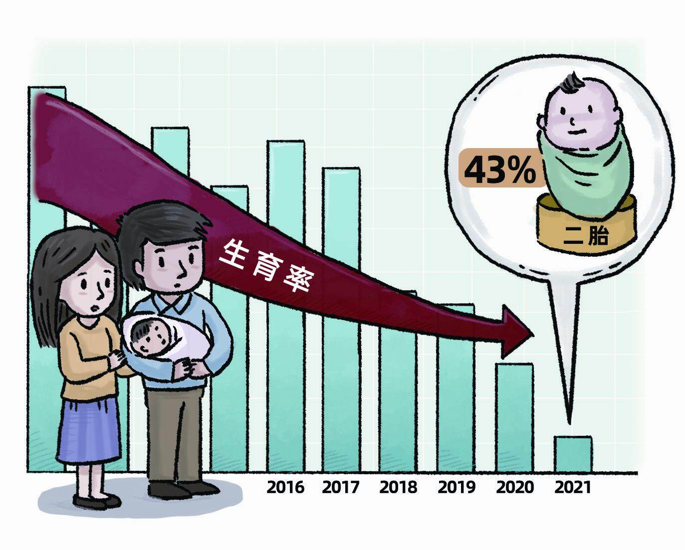 插图/茶茶 出生人口中,二孩占比从2013年的30%左右上升到2021年的43%左右。 —国家统计局局长宁吉喆1月17日在新闻发布会上指出,2021年中全年出生人口1062万人,人口总数净增长48万。出生人口减少受到多种因素综合影响,包括育龄妇女人数减少,生育水平继续下降,生育观念变化,婚育年龄推迟,疫情推迟年轻人婚育安排等。 对于个别的风险企业,采取市场化、法治化的方式,让其自