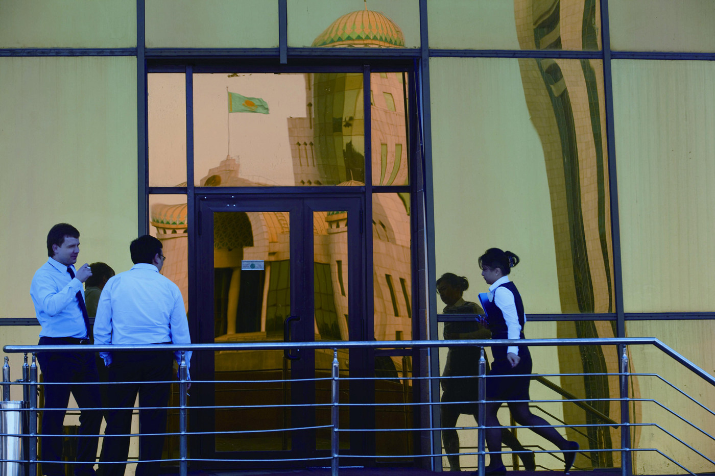 1. 哈萨克斯坦发展银行的员工,该银行位于市中心的摩天大楼之内。 哈萨克斯坦1月上旬的动乱平息后,国际维和部队已全部撤出,前总统纳扎尔巴耶夫也发视频称,自己一直在哈萨克首都静养,与继任者没有任何冲突。但世人的好奇并未打住。 在讽刺类喜剧电影《波拉特》中,哈萨克斯坦被描绘成一个穷困潦倒的国家,马尿是当地最火的饮料,女性往往被视为交易品,反犹太主义和同性恋恐惧症也十分猖獗。 200