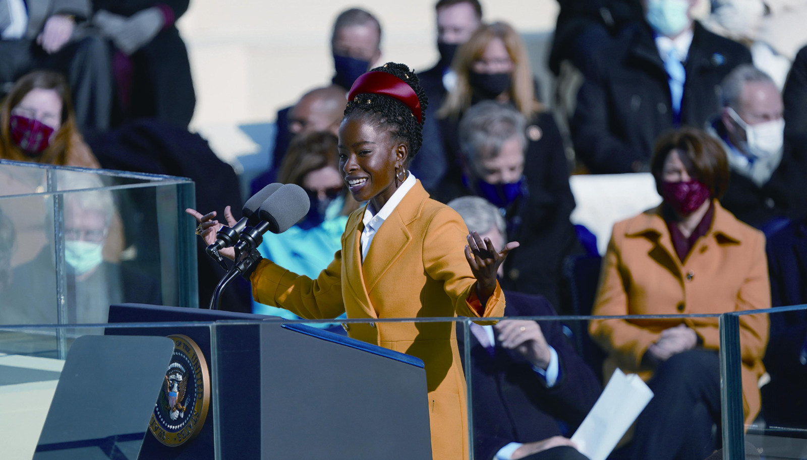 2021年1月20日,美国华盛顿,22岁非裔女子阿曼达·戈尔曼在拜登就职典礼上朗诵诗歌,她成为美国历史上最年轻的就职典礼诗人 在美国新总统拜登的就职典礼上,一位22岁的非裔女诗人阿曼达·戈尔曼朗诵了自己创作的一首诗歌,意外地在美国社交媒体被疯狂转发,成为整个就职仪式的焦点。 这首《我们攀登的山》的作品,据说是诗人在目睹1月6日美国国会山冲击事件后撰写的一首诗。 “我们承受的失去。