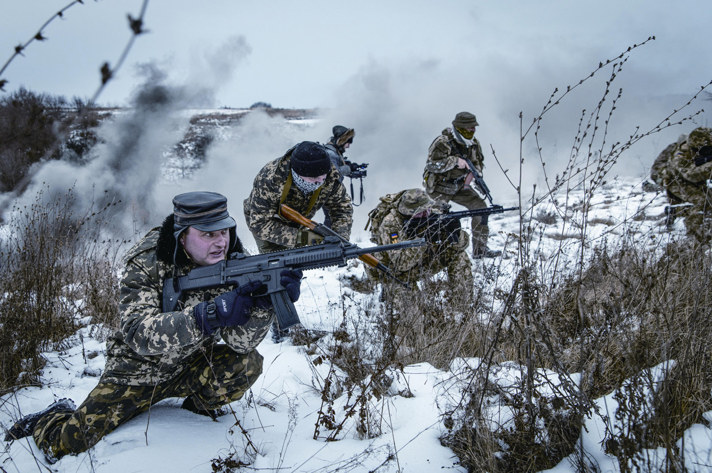 2022年2月5日,乌克兰奥布希夫,随着俄乌紧张局势升级,乌克兰平民开始接受基本的战斗和生存训练 入冬以来,与欧盟成员国波兰、罗马尼亚、斯洛伐克和匈牙利接壤的乌克兰,成为世界焦点。美国军方今年2月5日估计,俄罗斯在乌克兰边境部署的兵力,已满足全面入侵该国数量的70%,并且能在数日内攻陷乌克兰首都基辅。 新一轮的乌克兰东部(乌东)危机,自去年春天以来几乎扰攘了一年。在过去半年多的外交
