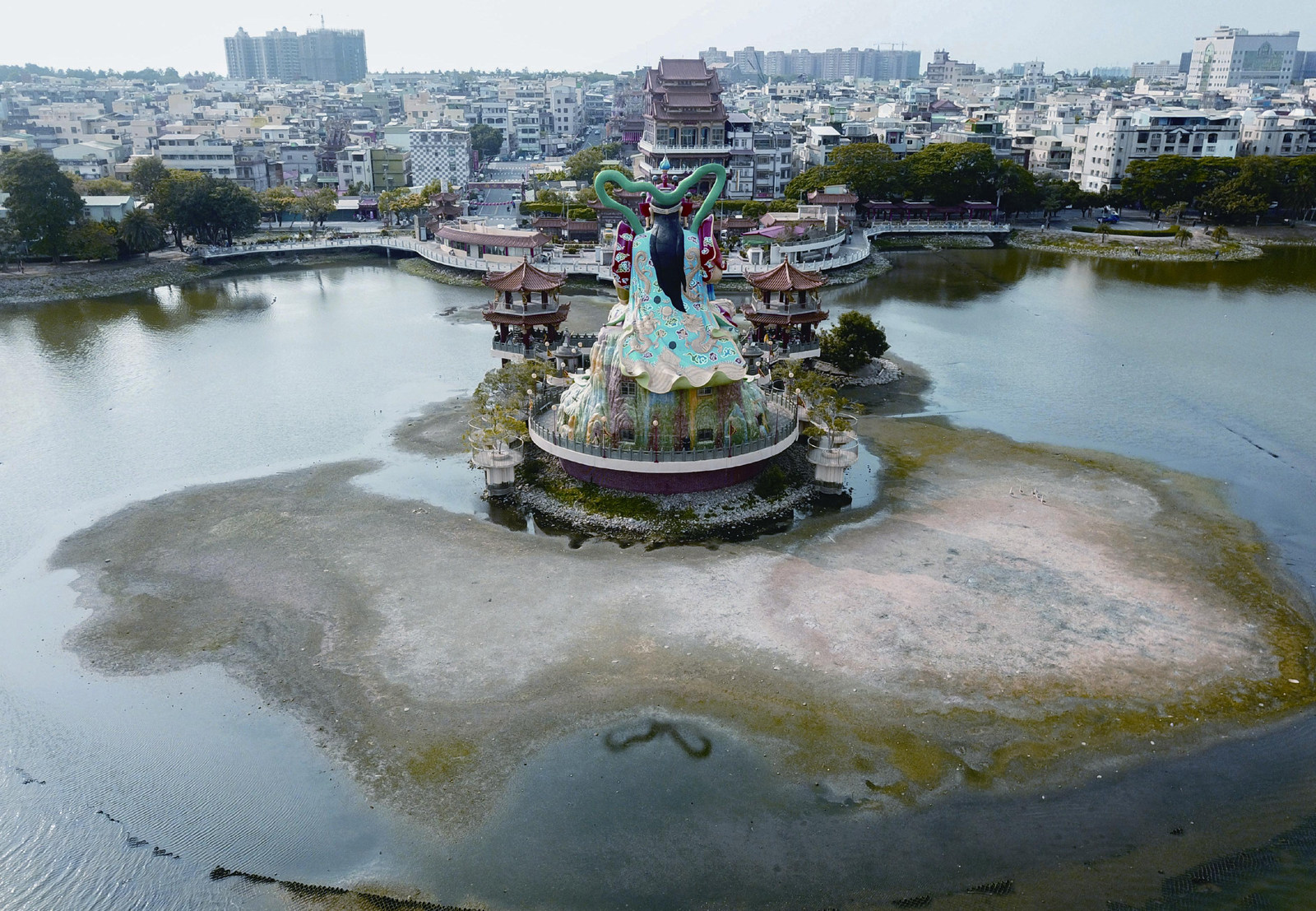 2021年4月13日,高雄莲池潭风景区附近的浅滩干涸见底 台湾缺水,水库都干了。 今年的梅雨季没有来,又久未下雨,加上去年没什么台风,2021年台湾的新竹、苗栗和台中地区正面临52年来降雨量最少的一年。 大旱来临,台湾的工业、农业、民生用水都受到了影响。 台湾占据了全球90%的芯片产能,而台积电作为龙头企业,从今年3月就已经动用水车运水;为了保障计算机晶片产业,台湾当局采取“弃