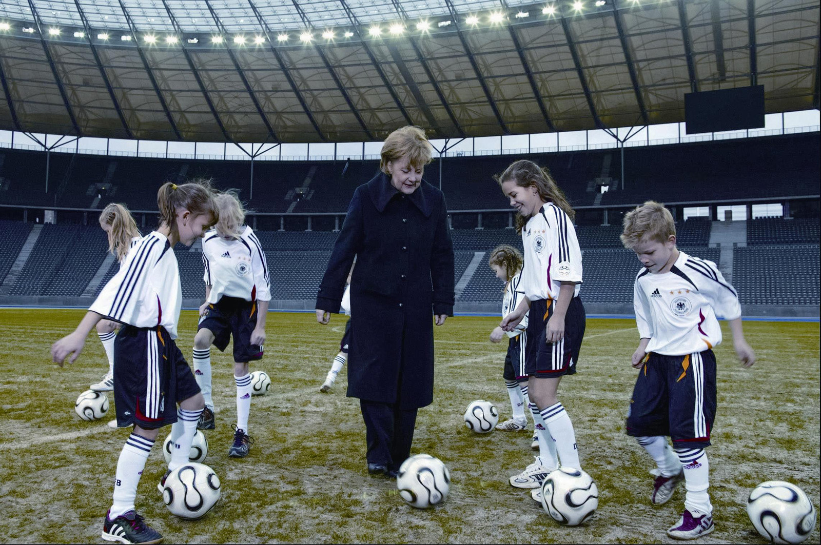 2005年12月20日,默克尔和一群孩子在柏林奥林匹克体育场踢足球 大约半年之后,执掌德国政府16年之久的“妈咪默克尔”就将完全告别政坛,这对德国、欧洲乃至整个世界都会是一件大事。今年以来,执政党基民盟在州议会选举中连遭败绩,但疫情期间最能安抚选民的,仍是这位多年蝉联《福布斯》“全球最具影响力女性”榜首的女总理。 不仅仅是默克尔,闪耀于世的各国和国际组织的女性领导人越来越多,这将如