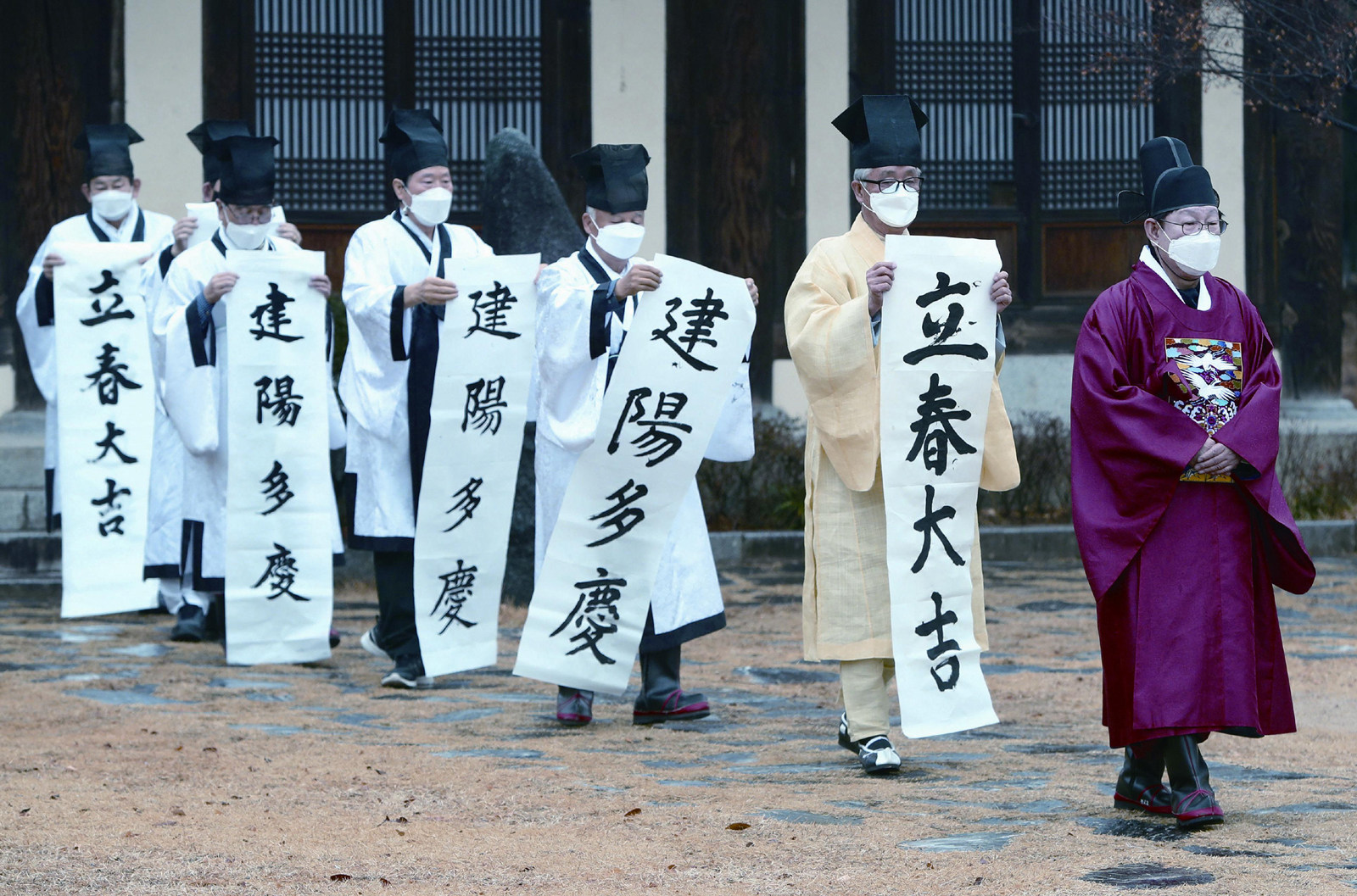 2021年2月1日,韩国大邱,韩国儒林人士在寺庙内写汉字书法对联迎接立春到来 “我们来吃这个吧。” “好的,谢谢。”宋仲基饰演的角色接过对方递来的自热式拌饭,吃得津津有味,镜头给了食品包装上中文品牌名一个特写。 这是韩剧《文森佐》最新一集中的一幕,播出后,在韩国引起轩然大波。 有韩国网友不满韩国电视剧为何要为中国品牌打广告,向剧方抗议。 韩媒报道,该品牌已与剧组签下3亿~4亿