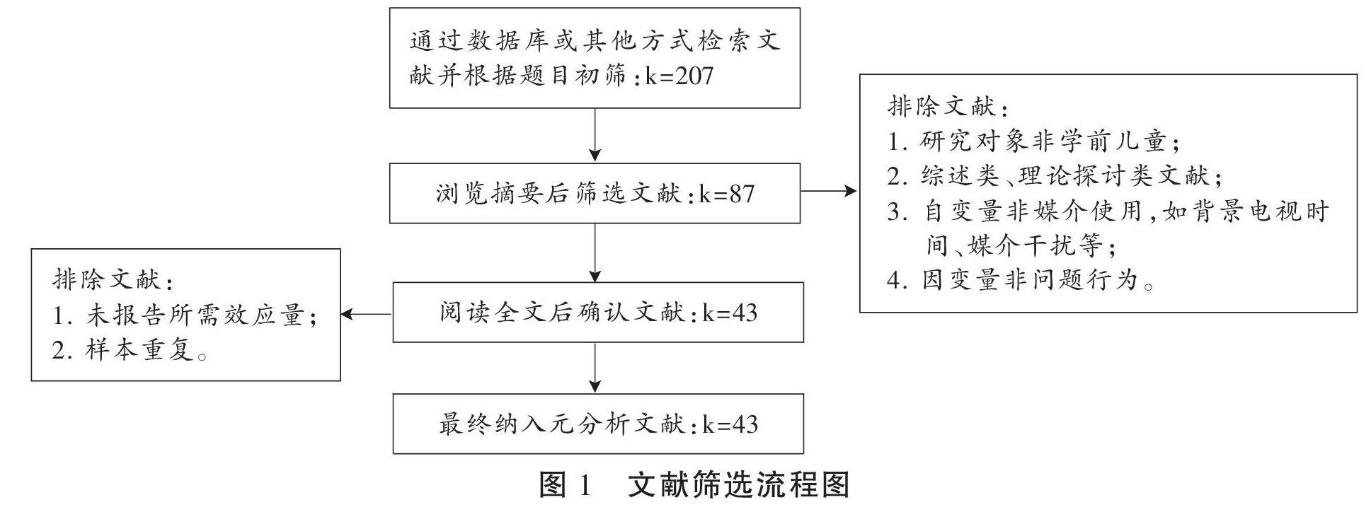 [摘 要] 由于当前关于屏幕暴露与学前儿童问题行为关系的已有研究存在相互矛盾的观点,因此有必要进一步澄清两者之间的关系,为规范和引导学前儿童的屏幕使用提供科学依据。本研究经过文献检索和筛选,纳入43篇量化研究中的48项独立样本和76 049名被试数据进行元分析,结果发现,学前儿童屏幕暴露与问题行为呈低程度的正相关(r=0.169);被试年龄和暴露时长对两者关系的调节效应显著,0~3岁儿童屏幕暴露、