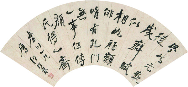 清代·何绍基 何绍基·行书扇面 何绍基画像 何绍基(1799-1873年),字子贞,号东洲,晚号蝯叟。湖南道州(今道县)人,晚清诗人、画家、书法家。出身于书香门第,其父曾任户部尚书。何绍基道光十六年中进士,官翰林院编修、国史馆总纂等。通经史,精小学金石碑版,一生提携后进颇多。他早年习书由颜真卿入手,后上追秦汉篆隶,临写汉碑极为勤奋用功,《张迁碑》《礼器碑》竟临写超百遍,且不求形似,全出己意