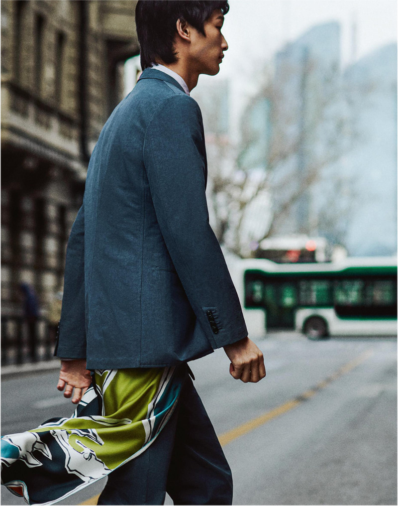 石头森林高楼大厦,城市霓虹开不出花。昼夜不息的灯光与行程让都会人几乎觉察不到日升月落,也再没有白天黑夜分门别类的着装规范。我们匆忙得像是世界不再寂寞的样子。 风暴蓝亚麻混纺帆布三粒扣夹克、风暴蓝亚麻混纺单褶长裤、浅色条纹双层袖宽松衬衫、深蓝色绒面乐福鞋和双面斜纹真丝方巾均为Hermès 柠檬水色印花图案宽松衬衫、白色无领衬衫、米色贴袋阔腿裤、深蓝色波点厚真丝领带和Herbag Zip reto
