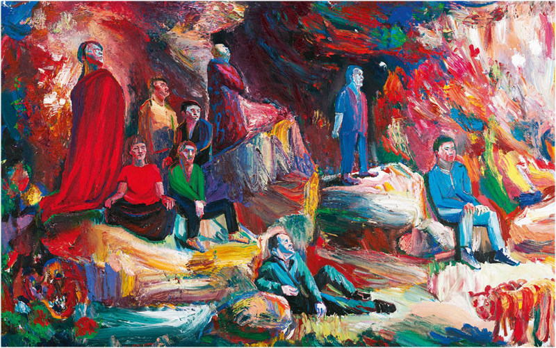 距离《浩瀚史》展览开幕还有两天,艺术家尹朝阳站在龙美术馆的展厅里,第一次看到了几幅巨幅水墨作品上墙之后的状态。在工作室里创作时,他大概预估了70%-80%的效果,但最终的成品比他想象中还要更好一些。尹朝阳涉足水墨画这个领域已经很多年,但这是他第一次决定在一个展览里密集地呈现多幅水墨作品:这一方面是因为这次的展厅面积较大,另一方面则是因为在不断的尝试和摸索中,艺术家本人终于在水墨这个