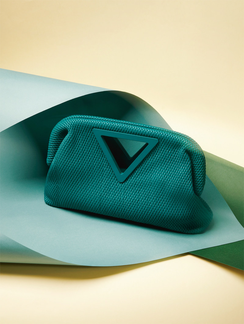 绿色Point手袋Bottega Veneta32900元 采用Losange绗缝皮革,棱角分明的时尚廓形,顶部附有独特的三角形手柄,内部隐藏式磁铁开合设计确保闭合安全的同时,保留了作品外表的流畅圆润。实用肩带可以折叠收纳,可随心切换背携方式。