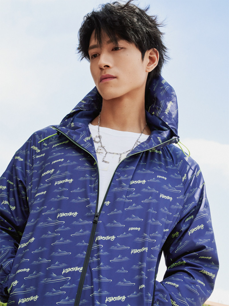 品牌DNA花型短板茄克K-BOXING 劲霸男装白色胶印T恤 Valentino金属字母项链CELINE BY HEDI SLIMANE 驼色系带风衣和棕色不规则剪裁短裤均为 Loewe黄色印花衬衫 Fendi 印花牛仔外套和印花长裤均为 Dries Van Noten深灰色高领衬衫 Salvatore Ferragamo金属手链 Gucci金属戒指 Hugo Boss 薄荷绿卫衣和薄荷绿刺