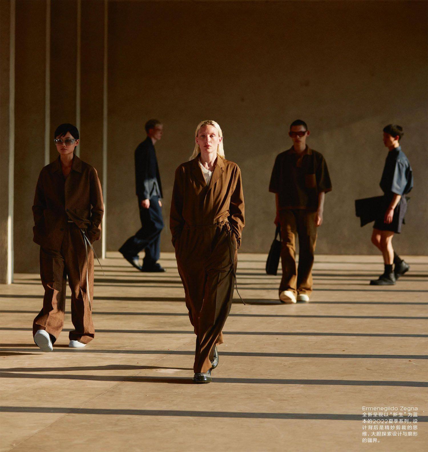 “它开始于一个我们曾经都经过的一个地方,我们所有人灵魂中的某一个地方。不是字面上的,而是身体上的,我们都对这个地方或这种感觉做出过自己的主观建构。然后,一点一点地,它随着我们的发现被取代,直到我们变得更为自由,最后它以一顿美餐做为收尾。”艺术总监Alessandro Sartori以这样一段话引出Ermenegildo Zegna ××× 2022夏季系列。 本次夏季系列的时装秀视频里,模特