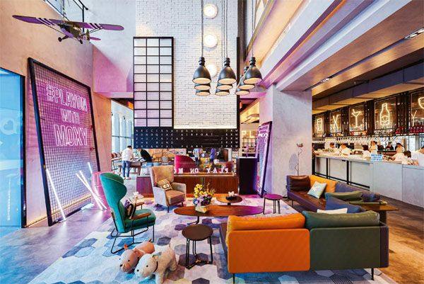 上海虹桥商务区Moxy酒店大堂休息区。 Moxy酒店房间内景。 “Moxy任你造”潮流跨界艺术展及派对。 驱车到达位于上海虹桥商务区的Moxy酒店时,已接近凌晨。深夜30公里的路程让人感到一丝疲倦,但黑暗中亮眼的桃红色“Moxy”招牌和活泼的字体一下子赶走了刚刚袭来的困意。初次听闻“Play on(玩乐不停)”这个概念,就让我对Moxy酒店多了几分好奇。 在寻常认知中,酒店不过是旅途中一个