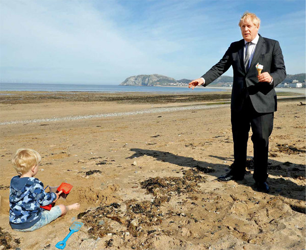 英国丨北威尔士 2021年4月下旬,英国首相鲍里斯· 约翰逊取消了原定的出访印度的计划,来到北威尔士兰度诺,参加当地保守党举行的助选活动。看似严肃的助选,约翰逊依旧发挥他轻松搞笑的特长,路边随手买了个冰激凌,一边品尝一边走访。看到一个小男孩坐在沙滩上玩,约翰逊似乎要与他打招呼,可小男孩全然沉浸在自己的世界中,一副“不关我事、不要理我”的样子。首相遭此“冷遇”,估计手里的冰激凌都不香了。