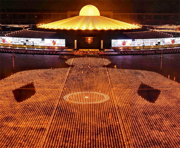 泰国丨曼谷 泰国法身寺外的“蜡烛阵”,纪念世界地球日。 2021年4月22日是世界地球日。当天,泰国僧侣与志愿者在泰国法身寺外摆放了33万支蜡烛以示纪念。仪式开始后,他们依次点燃蜡烛。一支支,一排排,当33万支蜡烛同时燃起,一幅巨大的“僧侣冥想图”跃然在地球上,还不时随着火苗跳动,场面震撼壮观。此举还打破了世界上最大规模蜡烛展示的世界吉尼斯纪录。组织者表示,受新冠肺炎疫情影响,约有30万名僧人