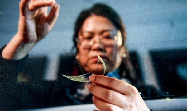 中国丨江苏 陈英华要在一张薄如蝉翼的布面上绣出一弯明月。她认为,手工创作要比机械更能赋予作品情感,更有温度。 陈英华出生在有着“刺绣艺术之乡”美誉的苏州镇湖。一个偶然的机会,陈英华接触到宇宙星空系列的照片,从小对星空充满向往的她,决定用手中的绣线,绣出向往的“星辰大海”。26幅“星空”苏绣历时十多年,在一针一线中诞生。在一次国际天文学联合会展览上,这组星空系列刺绣引起国际人士惊叹。美国航空航天