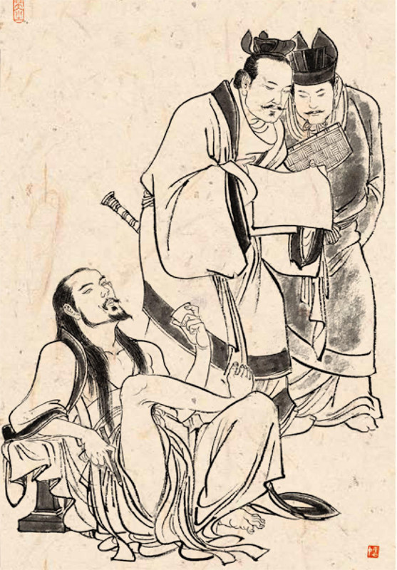 《世说新语》中有“任诞”一门,任是任性,诞是放诞。任诞的意思,就是不为礼法所拘束,追寻自由的天性。其中说到了阮籍: 阮籍遭母丧,在晋文王坐进酒肉。司隶何曾亦在坐,曰:“明公方以孝治天下,而阮籍以重丧,显于公坐饮酒食肉,宜流之海外,以正风教。”文王曰:“嗣宗毁顿如此,君不能共忧之,何谓?且有疾而饮酒食肉,固丧礼也!”籍饮啖不辍,神色自若。 阮籍在为母服丧期间参加司马昭的宴会,在坐席上喝酒吃肉。司