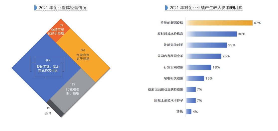 2021年12月29日国务院常务会议决定延续实施部分个人所得税优惠政策,将全年一次性年终奖不并入当年工资薪金所得,实施按月单独计税的政策延至2023年底。这意味着,之前企业和员工普遍担心的2021年年终奖税优政策到期后带来的个税增加、收入减少的不利影响统统不存在了。 2021年企业经营业绩情况 ●近半数公司业绩达成率超100% 从2021年企业的经营业绩情况来看,企业整体的经营情况较为乐观