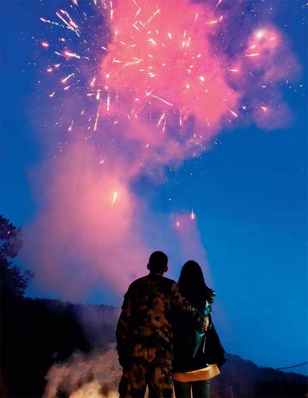 作为连队主官,我很少陪在妻子身边,更让我愧疚的,是欠她一个求婚仪式。2020年国庆节期间,她来连队探亲。经上级批准,我和全连战友瞒着她一起筹划了一场求婚仪式。 那天,天边只剩下一抹晚霞,我看着司务长陪着她走进篮球场的中央。她刚刚站定,周围所有的灯光突然熄灭,大屏幕亮起,开始播放我们相爱的过往……音乐渐小,两台东风卡车的大灯骤然亮起,照亮求婚的“舞台”。我捧着鲜花,快步奔到她面前说道:“我是一