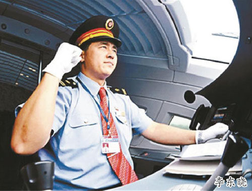 挑选中国高铁司机的严格程度不亚于招考飞行员。当你看到气宇轩昂的动车骄子——李东晓时,你对高铁司机肯定是肃然起敬的。这个有着一米八身高、穿着挺括的制服、戴着雪白手套的高铁司机,一招一式都给人留下了难忘的印象。 采访过他的《人民铁道》报记者栾丹丹回忆说:“看李东晓驾驶CRH3型动车组,是一种赏心悦目的享受。浓眉下的双眼炯炯有神,警惕地扫视着一个个接踵而至的信号及道岔开通情况。虽然是单司机执乘,但李东