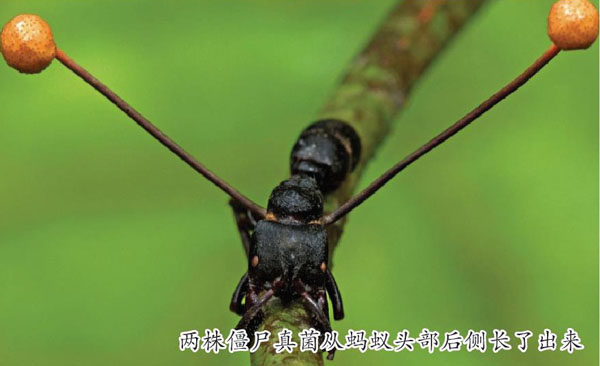 学名:偏侧蛇虫草菌 分类:真菌门 分布:东南亚、巴西 大小:1至7厘米长 能控制宿主行为的真菌 生物界存在许多可怕的寄生现象,有些真是令人细思极恐。而最为可怕的寄生虫,是虫草属的一种真菌。虫草属真菌是一些使昆虫致病进而丧命的真菌,为了存活及繁殖后代,它们寄生在昆虫体内,一步步让昆虫走向死亡。僵尸真菌更是虫草属真菌中的厉害角色。 僵尸真菌存活在热带丛林里,它们的目标是一种叫作弓背蚁的蚂蚁