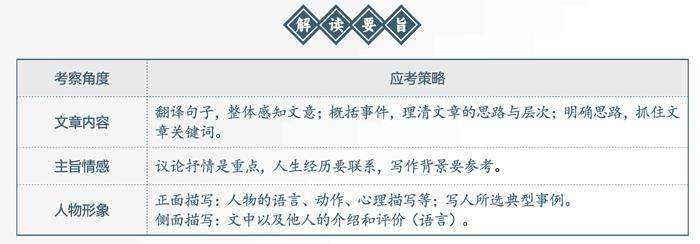 写人叙事类文言文一般遵循“选取典型事例写人叙事”的原则,所叙之事彰显主人公的人格魅力,体现人性的光辉。本期文言文特辑选取三篇经典散文,让你在寻人物、析文本中发现人物的闪光点。 考点锁定 1. 掌握文言实词和虚词的意义和用法。 2. 理解选文的基本内容与主旨思想。 3. 概括作者的观点、态度、写作意图,分析重点句子的含义、作用。 4. 理解作者的思想感情,评价人物形象。 5. 品析选文