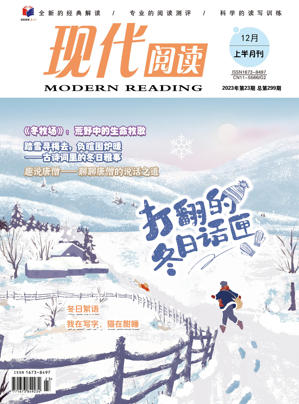 《现代阅读》互动评奖活动 在你的印象中,哪些冬天才有的“专属项目”让你记忆深刻?请以图片、视频或文字的形式,在社交媒体平台 (QQ、微信、微博等)晒出独属于你的冬日烟火气,即有机会免费获得2024年《现代阅读》(上半月刊)杂志(共3期)。 活动规则: 1.需带《现代阅读》杂志封面图及话题#现代阅读##群文挑战#发布。 2.动态发布24小时内收集24个“赞”。 3.完成任务后将截图发送至“