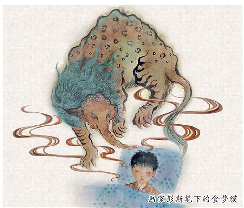 在月圆之夜,貘从密林中走出,来到人类的居所。更多时候,貘介于实有和虚幻之间,有人在梦中看到貘拖着毛茸茸的尾巴闪过,那时的貘,刚好吃完一个噩梦。 爱尔兰裔日本作家小泉八云在《怪谈》中提到的食梦貘,是一头食梦的怪兽,它在夜晚出现,吃掉人们的噩梦。书中写道:“它本领殊奇,能噬食人的梦。”原本无形的梦境,却被一头来路不明的神兽吸食。小泉八云认为,令人惊怖的噩梦,却是貘最喜欢的食物,因为有了貘,人们的睡梦