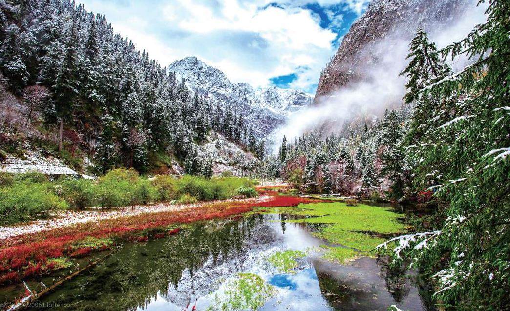 静候寒去,万物生; 初心如雪,见天地。 山岭重叠,流水回绕,树枝交错,云气聚集。时间赋予万物以光芒,历练后的沉静,风华后的万物,旷达一片。 雪后初晴,落日斜照,山巅白雪似与天上浮云相连,林梢雪花闪烁着夕阳的光彩。而希望,深埋在雪水滋养下的土壤里,在深刻的皱纹和豁达的气度里,在每一次磨难和坚韧的勇毅前行里,在山川湖海纯粹的诗意里,在轮回里,正在积蓄能量,等待,等待下一次破土。 最快的赶路,不