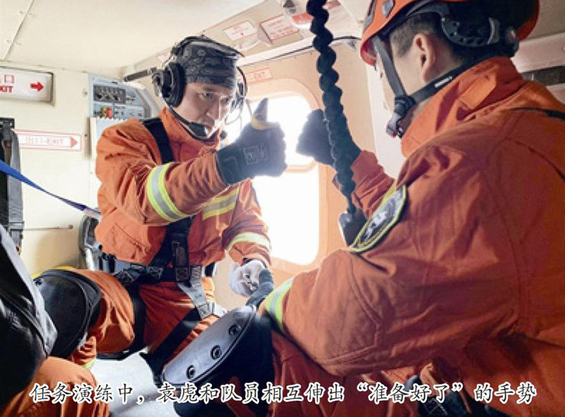 袁虎,2005年12月加入消防队伍,2008年7月加入中国共产党,现任青岛市消防救援支队航空救援大队任务员队队长,一级消防士。曾参与汶川抗震救灾、玉树抗震救灾,先后荣立个人二等功一次、三等功一次,并被评为全国消防领域先进个人、山东省优秀共产党员。从业16年,袁虎面对急难险重任务总是冲锋在前。 “向前5、4、3、2、1,位置,好……”记者前去城阳区青岛消防训练基地采访时,市消防救援支队航空救援大队