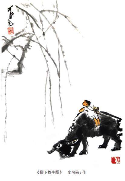 [摘 要]中国画的寄情与选材,虽然画家性格不同,绘画风格各异,但他们对艺术追求的方向是一致的。即好的作品都呈现出骨气、格致,都是真性情、真感情的表露。李可染画牛,贯穿始终的是以牛的品格展现的坚毅、强犟、朴质……无论用笔用墨还是画面的经营布局,都是敦厚、质朴、洗净铅华的格局。其删繁就简的大写意画法,以书入画的笔意和苍润的墨趣,构成了李可染牧牛系列作品特有的深沉含蓄兼具天真烂漫的绘画意趣。 [关