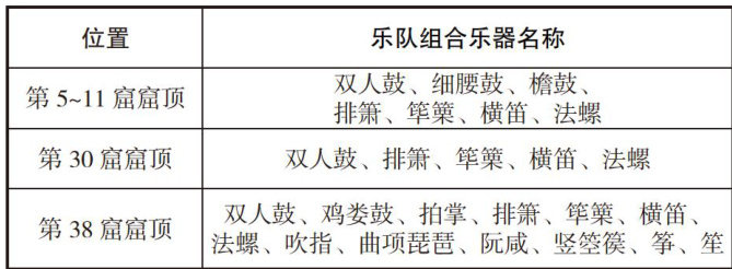 [摘要」云冈石窟的乐器组合记录着北魏时期少数民族与汉族音乐文化交流融合的历史印记,以拓跋鲜卑为首的少数民族政权积极吸收汉族文化,并将龟兹乐、疏勒乐、高丽乐等胡乐体系带入中原,融入民间。关于云冈乐器的定名,学界一直存在讨论。在云冈第5\~11窟、第30窟、第38窟的窟顶,出现了一种双人击鼓的飞天伎乐雕刻。由于鼓文化内涵多样以及石窟开凿雕刻的风化侵蚀,乐器辨识存在较多困难,该鼓类名称至今尚未确定,学者多认为其形态与羯鼓、搁鼓等相似且渊源深厚。研究通过对云冈双人鼓图像具体位置的解读、历史文献的考证,并结合乐队组合分析,认为其特点与羯鼓(两杖鼓)的发展密切相关,是胡汉文化交融的生动体现。无论从时代变迁、外貌形制、民族传播还是乐队排列观察,双人鼓都是胡乐体系中独具特色的鼓类乐器,北魏民族大融合的壮阔历史亦在震震鼓声中跨越千年,回响至今。