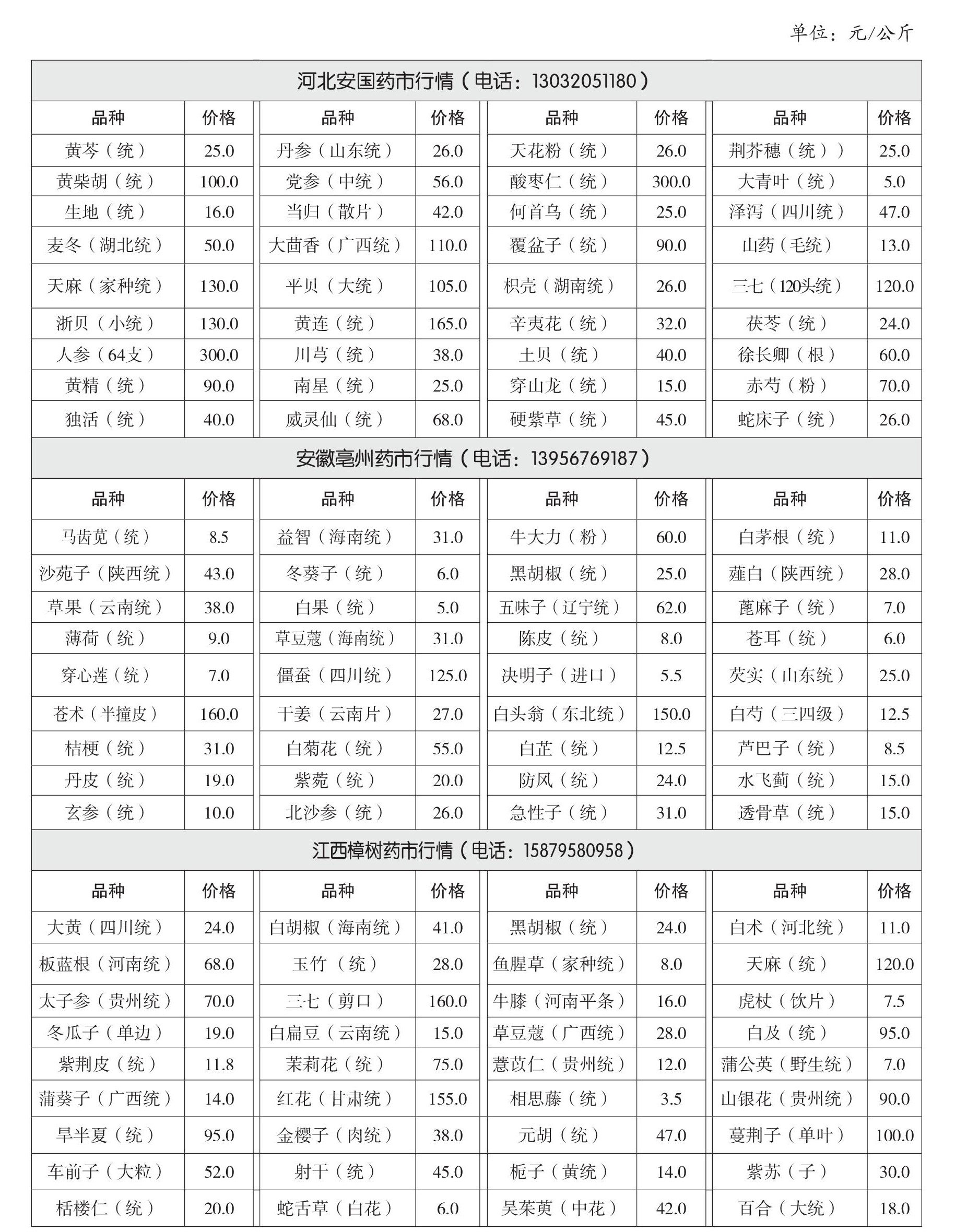 全国三大 药材 市场近期行情