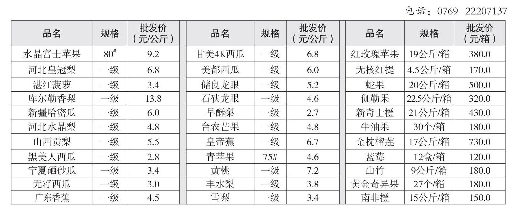 东莞市果菜副食交易市场 水果 行情