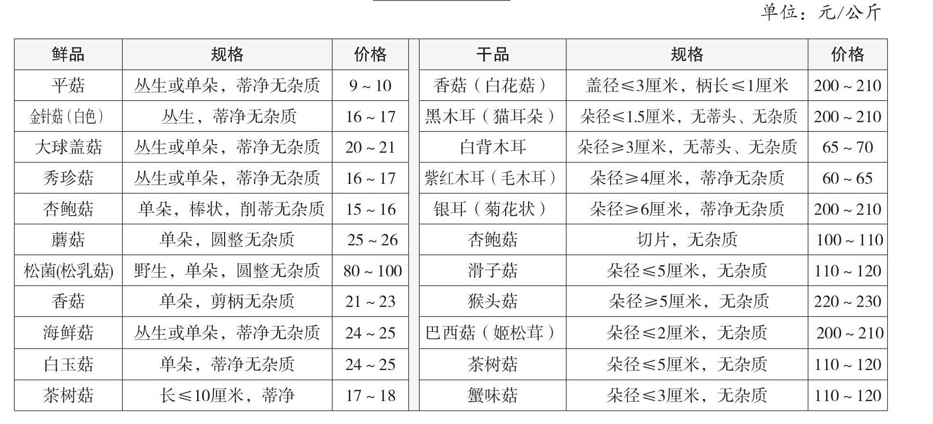 湖北宜昌食用菌市场近期行情