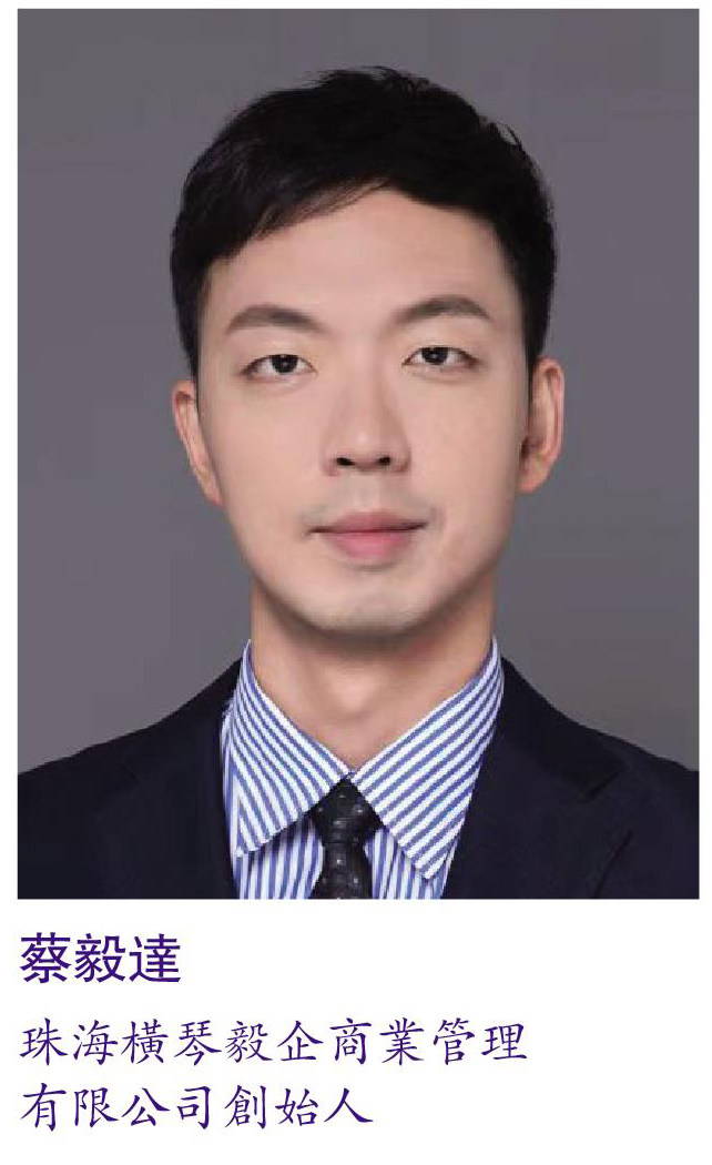我是蔡毅達,從小在澳門長大,是土生土長的澳門青年。由於我的祖籍是福建,高中畢業後,我選擇前往廈門就讀大學。畢業後,回到澳門從事教育工作。兩年後,經過深思熟慮之後,我放棄了在澳門的教職工作,選擇去家鄉福建發展,創辦了自己的企業禮品定制服務公司。 乘建設大灣區東風回橫琴發展 雖然我在澳門出生、長大,但小時候一有假期,我的父母就會帶我回福建老家,所以我對內地的環境和文化一點也不陌生,甚至時常有一