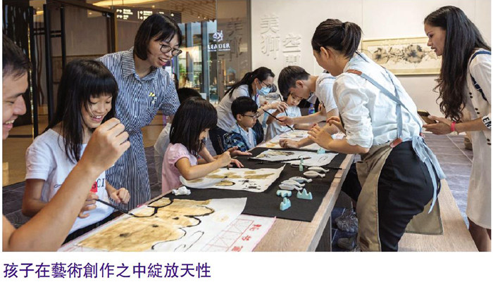 嫩畫廿四包剪揼活動透過剪刀、石頭、布遊戲,輕鬆有趣地創作出獨一無二的山水畫,同時加入中國傳統二十四節氣元素。二十四節氣是古代勞動人民長期經驗的積累和智慧的結晶,聆聽導賞員細說其習俗及故事,並繪畫代表圖案點綴山水,如白露時候鳥南飛、立春時梅花盛開等,讓孩子在藝術創作之中感受四季節氣變化,融入自然,綻放天性。在剪刀、石頭、布遊戲中進行藝術創作,讓傳統山水畫變得隨手可及;並以咖啡渣研磨顏料結合傳統水墨