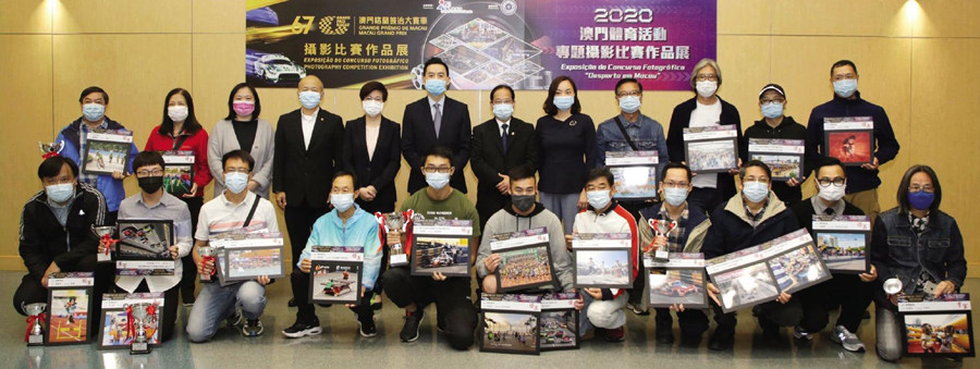 由體育局主辦,澳門攝影學會協辦的2020“澳門體育活動”專題攝影比賽,以及第67屆澳門格蘭披治大賽車攝影比賽均已順利完成。2020“澳門體育活動”專題攝影比賽分為兩個攝影主題:“競技群英”及“健體歡顏”,共收到463幅參選比賽作品,而大賽車攝影比賽則收到334幅作品。 頒獎於2月24日下午六時半在體育局西翼辦公樓地庫一樓會議室進行,出席的嘉賓包括:體育局副局長劉楚遠、副局長林蓮嬌、澳門攝影學會會