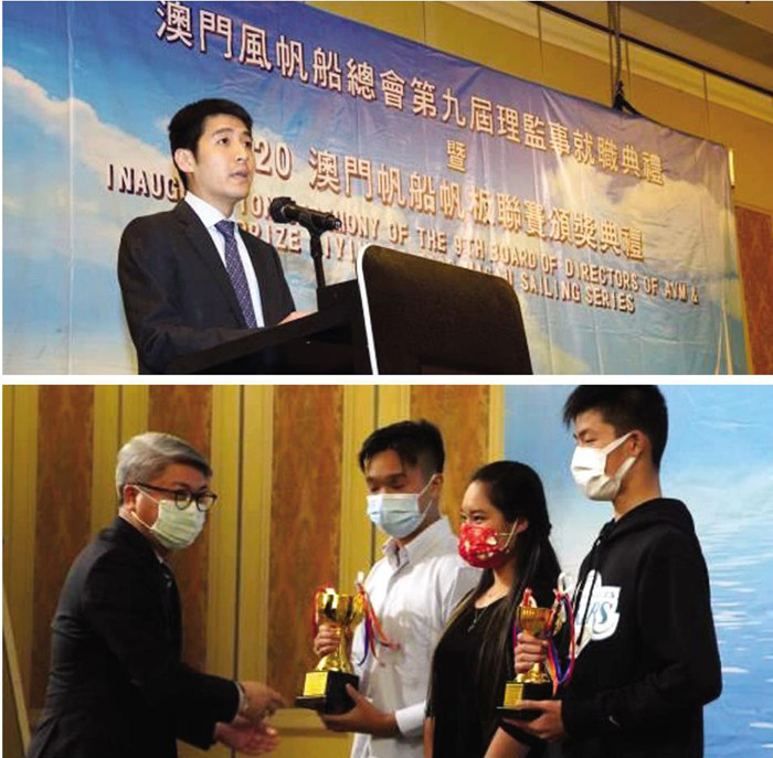 2月20日,澳門風帆船總會假路氹城倫敦人喜來登大酒店五樓宴會廳舉行第九屆理監事就職典禮暨2020澳門帆船帆板聯賽頒獎典禮。 大會於晚上七時舉行,會長馬志成致詞指,帆船運動在世界各地有很多愛好者,也是奧運及亞運比賽項目之一。澳門地處珠江出海口,很適合推廣帆船運動。2015年12月,中央批予澳門85平方公里管理海域,更是拓闊了風帆船運動的活動空間。馬志成又指出,去年帆船活動受到新冠肺炎疫情很大的衝擊