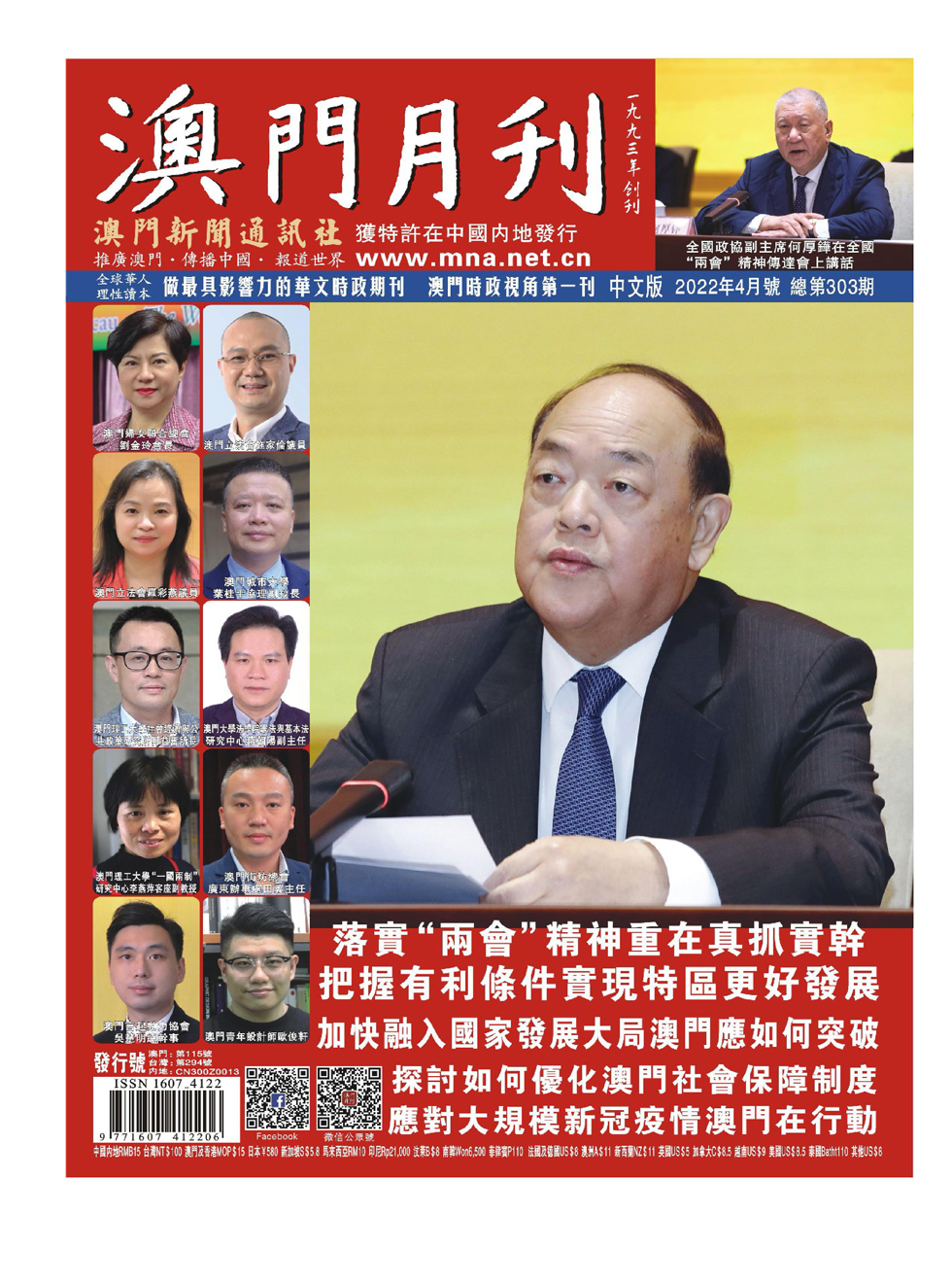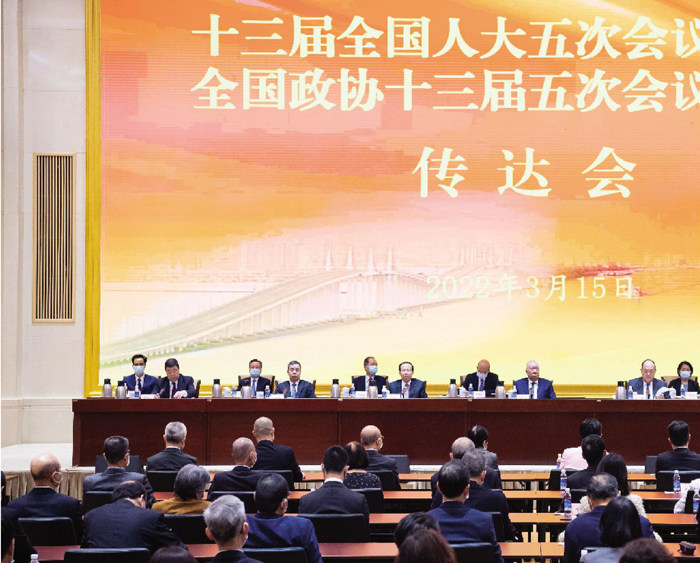 常態下,每逢三月,都是“中華人民共和國全國人民代表大會”和“中國人民政治協商會議”(媒體習慣簡稱為“兩會”)召開的日子,也是全國各地貫徹“兩會”精神,全面明確和部署全年工作目標和任務的階段。 積極參政議政融入國家發展 3月4日至3月11日,為期一個多星期的全國“兩會”結束後,3月15日下午,中央政府駐澳門聯絡辦公室便在澳門召開全國兩會精神傳達會。全國政協副主席何厚鏵、澳門特區行政長官賀一誠