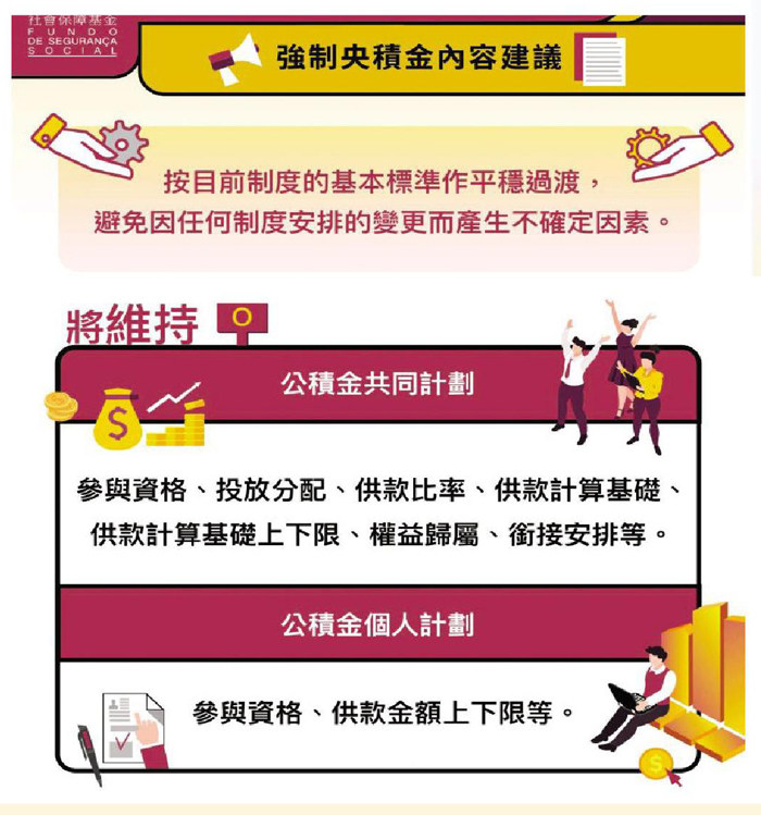 對於澳門目前的多層式社會保障體系,您作何評價?對本澳非強制央積金邁向強制央積金制度持何種態度?有何建議? 澳門立法會羅彩燕議員:除現金分享、敬老金等非恆常性質的福利措施,我較為傾向稱之為“雙層式社會保障制度”,即現時最基本的“養老金制度”以及“非強制性央積金制度”。這種體制體現了“普惠性”及發揮了“特殊關照”作用,相比鄰近地區的社會保障制度亦較為優越,是特區政府德政之一。我以世界銀行對社會保