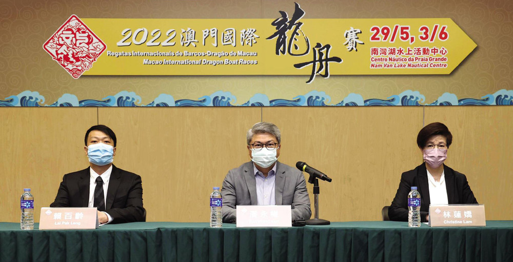 由體育局及中國澳門龍舟總會主辦,市政署及行政公職局協辦的“2022澳門國際龍舟賽”活動,將於本年5月29日及6月3日在南灣湖水上活動中心舉行。賽事組委會3月16日舉行新聞發佈會,介紹活動詳情。出席新聞發佈會的嘉賓包括體育局局長潘永權、中國澳門龍舟總會會長賴百齡及體育局副局長林蓮嬌。 “2022澳門國際龍舟賽”將於端午佳節期間上演,5月29日率先上演小龍賽,而端午節正日6月3日將舉行標準龍賽事