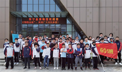 为了更好地了解家乡的历史文化,安庆市怀宁县一德实验学校组织同学们到县博物馆开展主题研学活动。活动中,小记者们认真地参观并做好记录,写下了一篇篇精彩的报道。一起来看看吧! 小记者陈馨雅:博物馆初印象 迈着轻快的脚步,同学们来到怀宁县博物馆门前的广场。据解说员介绍,怀宁县博物馆建成于2005 年,基本陈列分为怀宁县文化与名人展厅、古代文明史孙家城遗址专题展厅、互动体验厅展厅等。馆藏文物1400 件