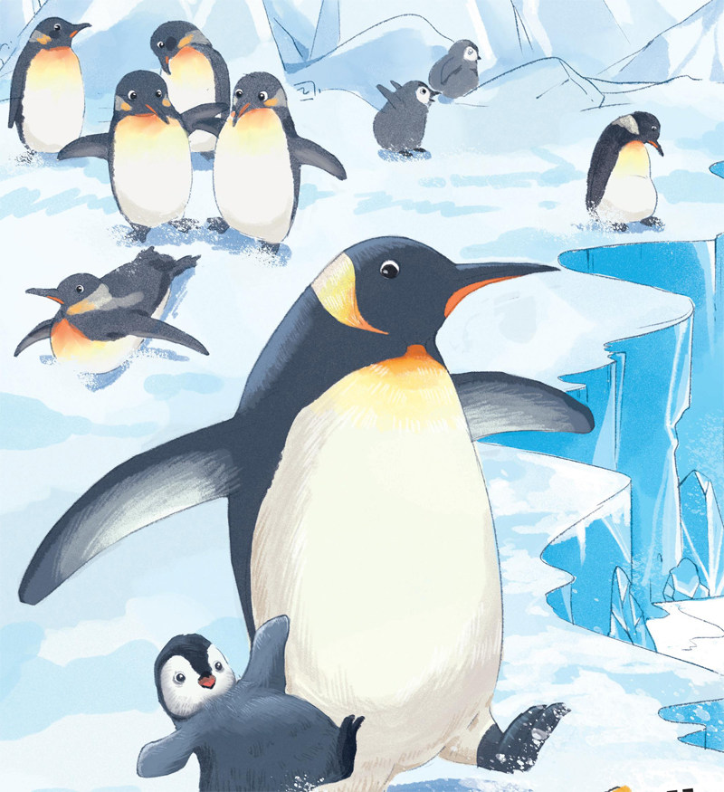 看,远处那一群摇摇摆摆的“燕尾服绅士”,就是我们今天要认识的朋友——企鹅。 企鹅,一种喜欢在冰天雪地的环境中生活的鸟类。它们主要聚居在南极洲附近,听说,地球还没有形成冰盖时,它们就居住在那里了。 企鹅虽然是一种不会飞的鸟类,但它们从游泳这项活动中体会到了飞一般的感觉。其他游禽主要靠脚蹼游动,而企鹅,除了脚蹼还有一对短小的翅膀,一入水,这对翅膀便像船桨一样发动起来,帮助它们飞速前进,轻轻松松就能
