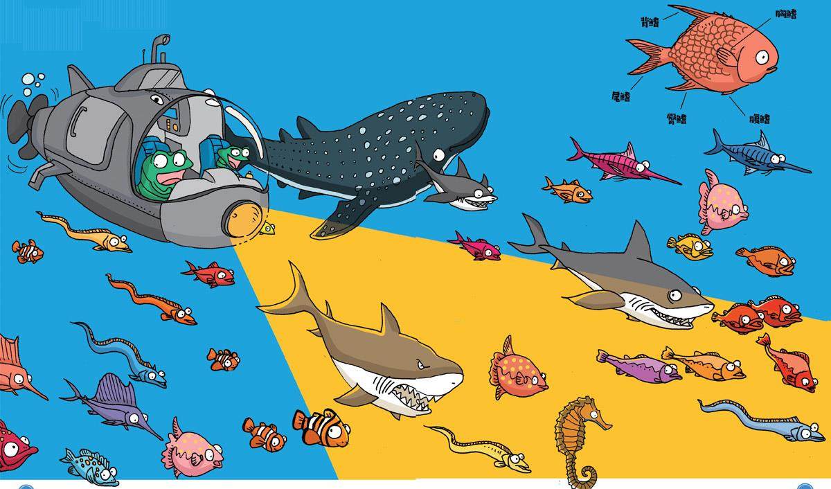 你知道吗,一半以上的脊椎动物都是鱼。对于鱼你很熟悉了,它们一辈子都生活在水里,是水中的主人。 鱼通常身披鱼鳞,长有鱼鳃。鱼会通过摆动尾巴和身体,以及用于保持平衡的鳍来游动。 最不像鱼的要属海马。它的头像长嘴巴的马,身后还有一条长长的、卷曲的尾巴。 你有没有去过游泳馆?当你钻到水下时,有时会因为不能呼吸而憋闷,甚至呛水,而鱼却能在水里生活一辈子。你知道这是为什么吗? 这是因为鱼有一个特别的呼