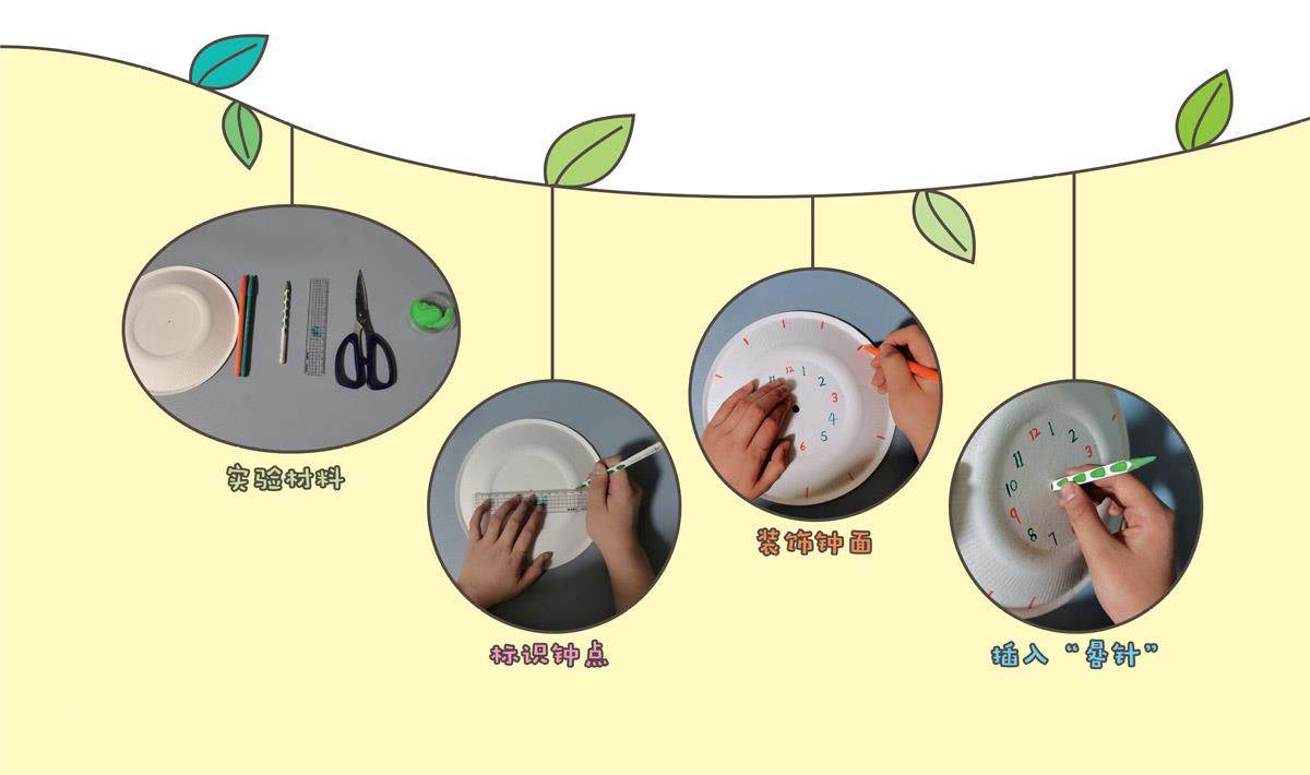 在钟表还未问世的时候,人们是怎样计时的呢?古人很有智慧,他们通过观察日影的变化规律发明了一种计时仪器,称为日晷,又名太阳钟。于是,我也利用一些简单的工具和材料,制作了简易太阳钟,来观察日影变化的规律。 制作太阳钟可以分为以下几个步骤: 第一,准备一个直径约20厘米的圆纸盘、两支不同颜色的彩笔、一支铅笔、一把剪刀、一把尺子、若干橡皮泥等。 第二,在圆纸盘圆心画一个点,然后用尺子把圆盘分为12等